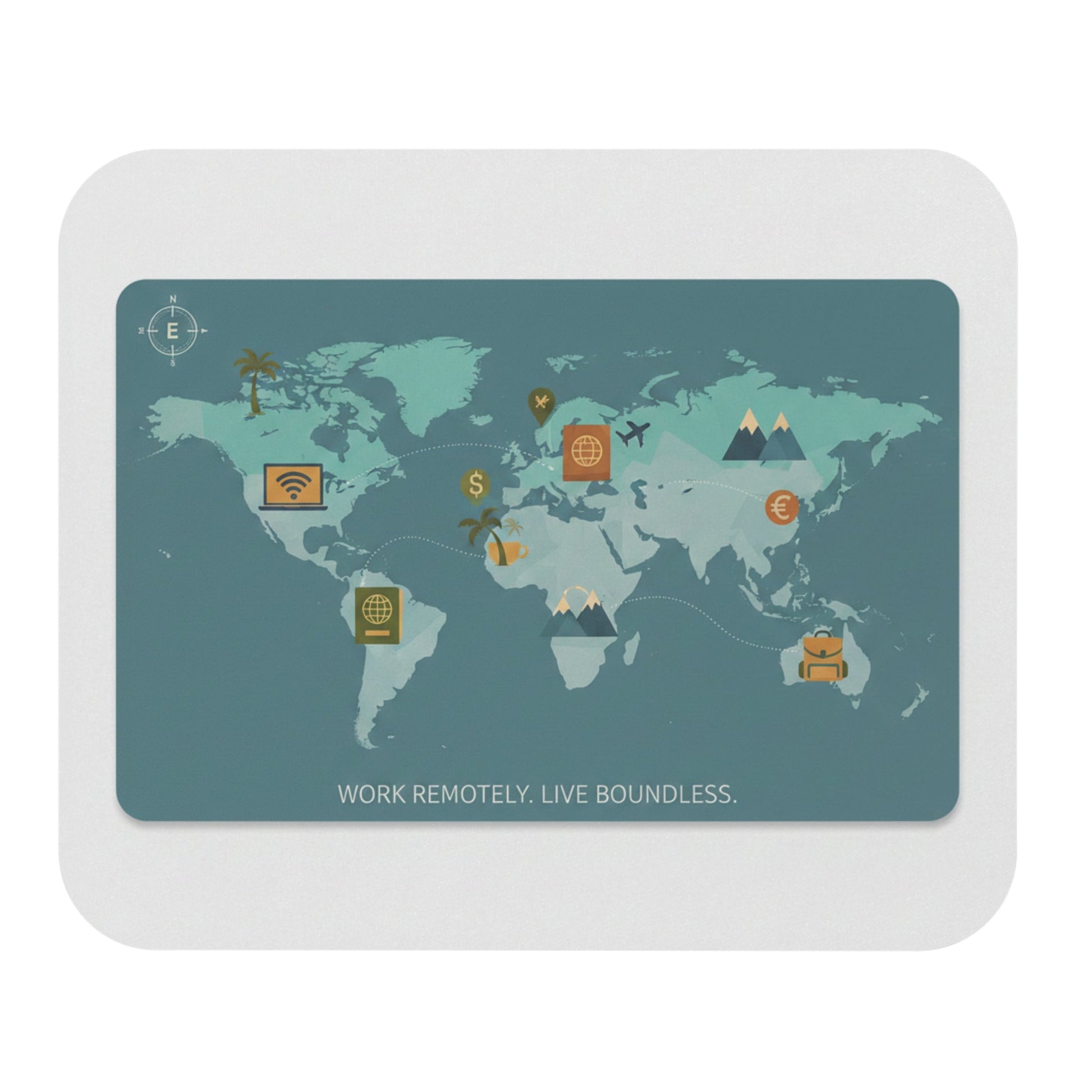 World Travel Map Mouse Pad – “Work Remotely. Live Boundless.” | Remote Work Desk Mat